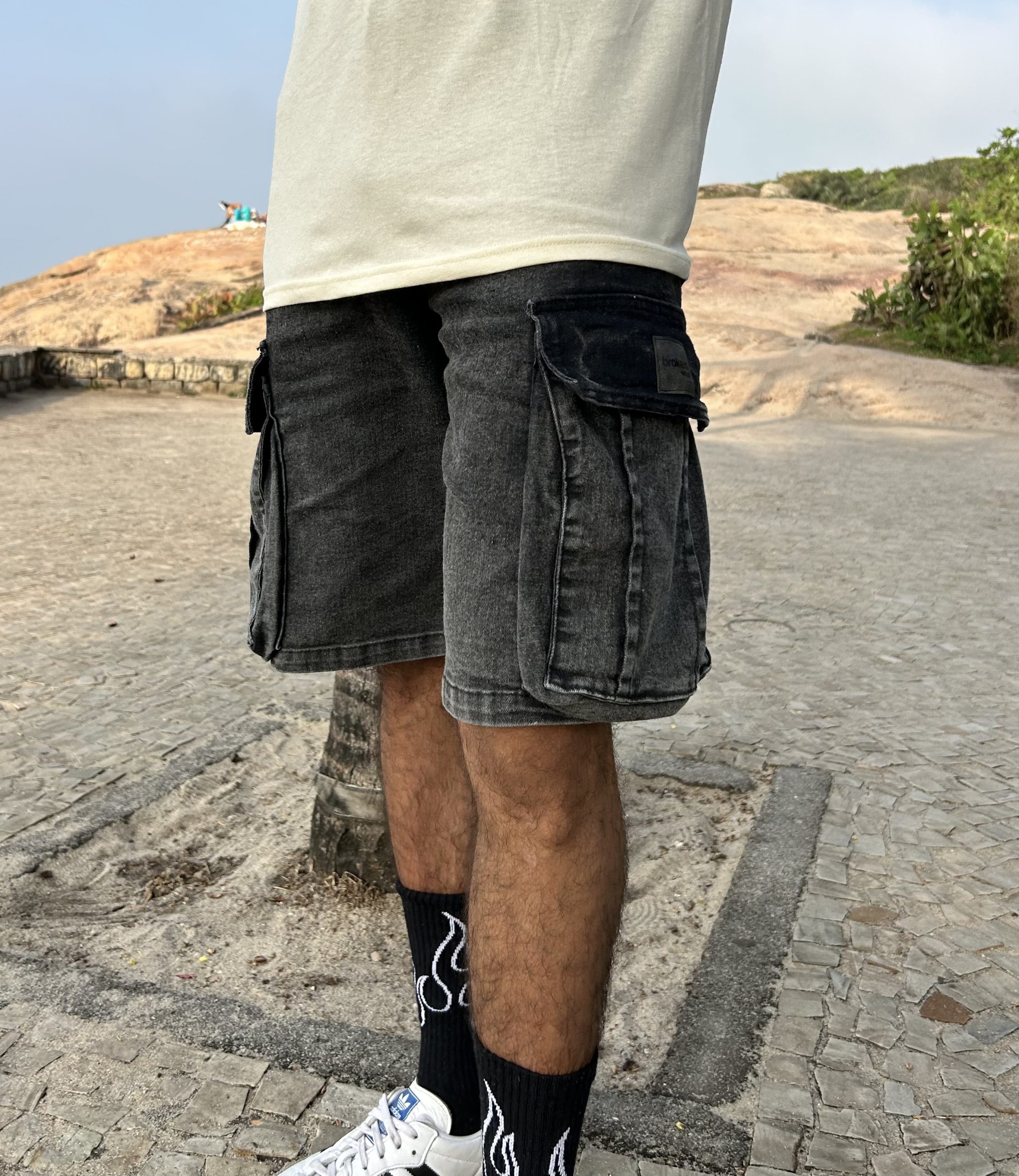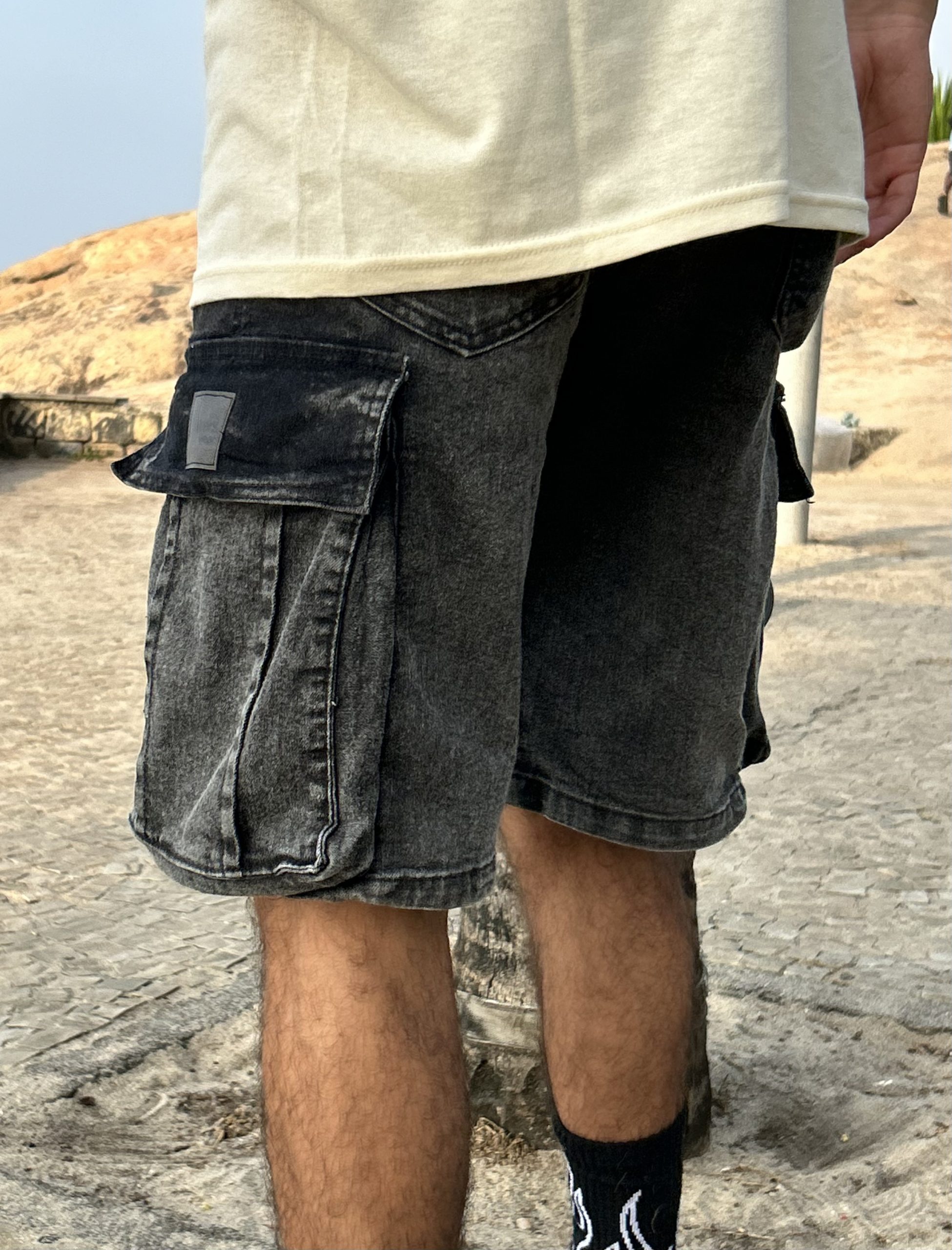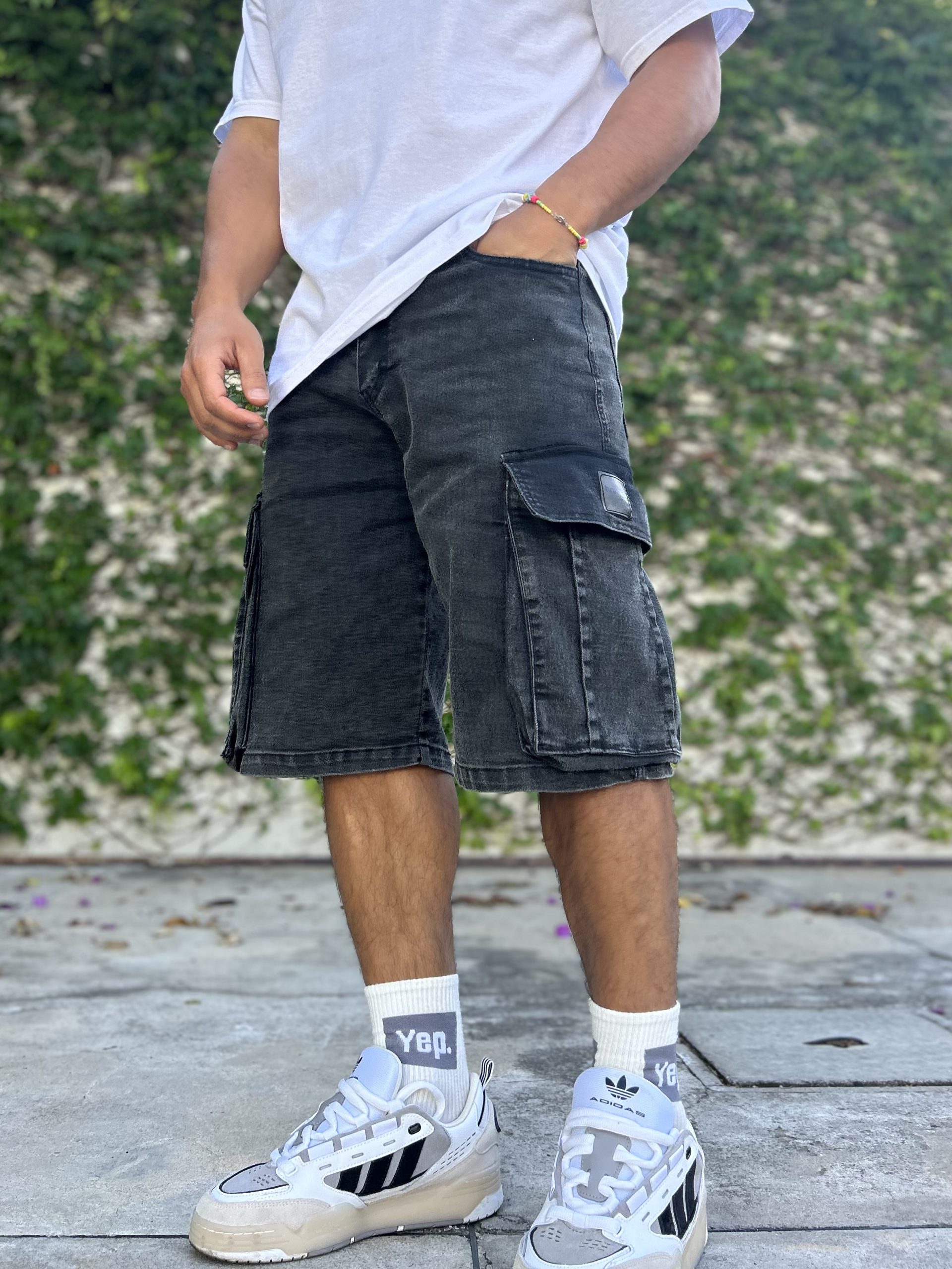 Bermuda jean de jean Baggy cargo, una bermuda inspirada en la tendencia baggy, contiene spandex lo que la hace muy cómoda.