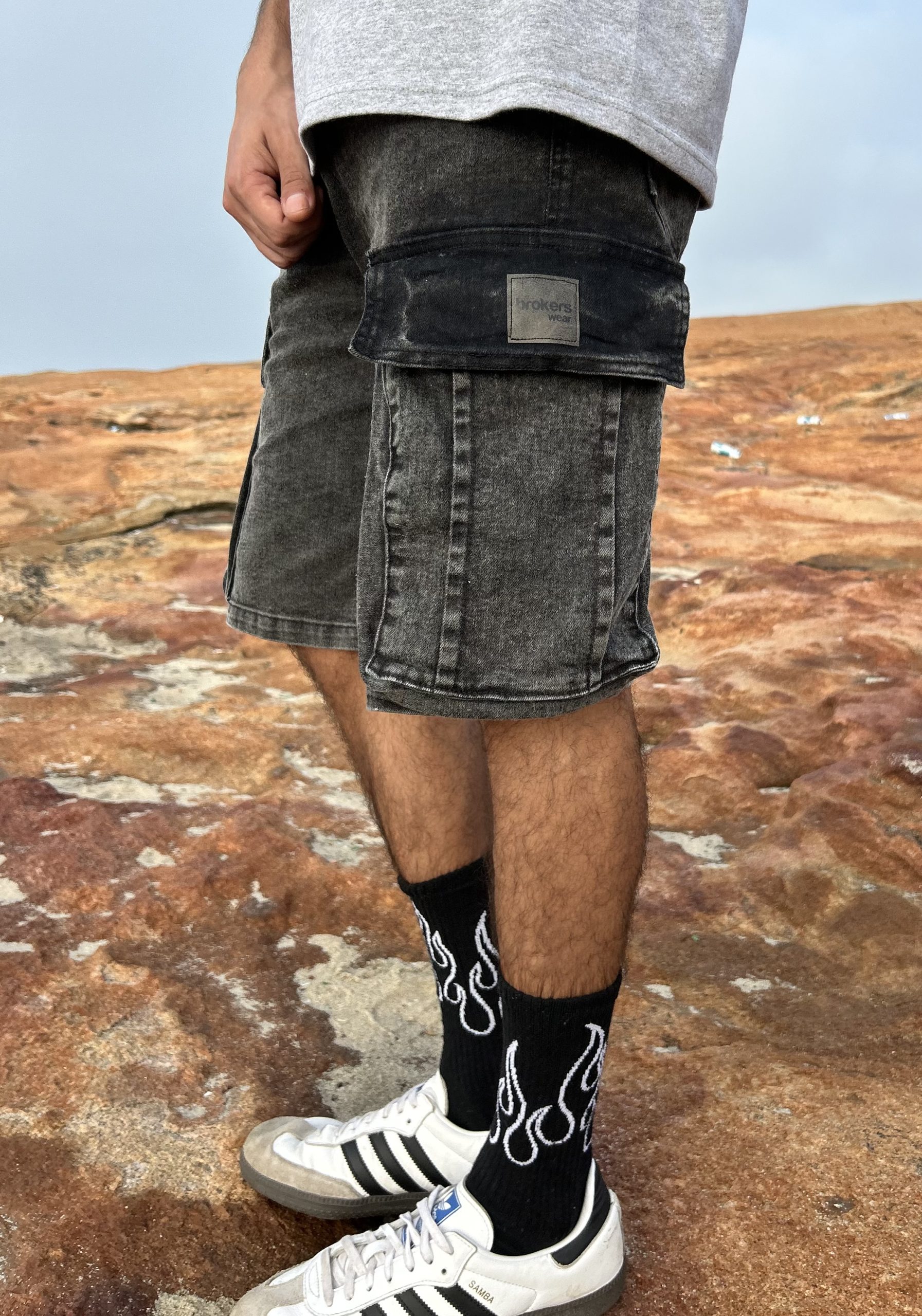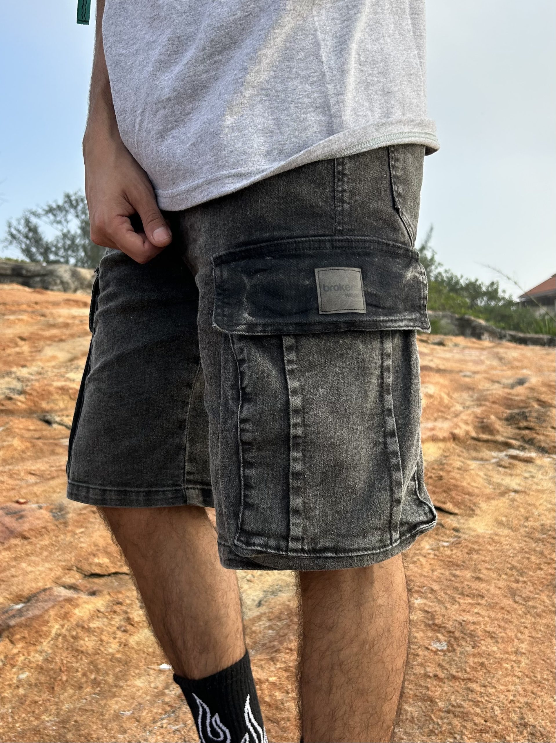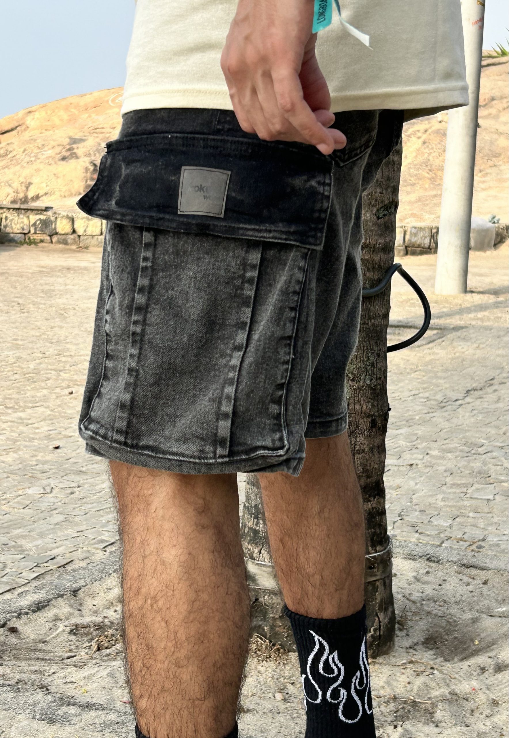 Bermuda jean de jean Baggy cargo, una bermuda inspirada en la tendencia baggy, contiene spandex lo que la hace muy cómoda.