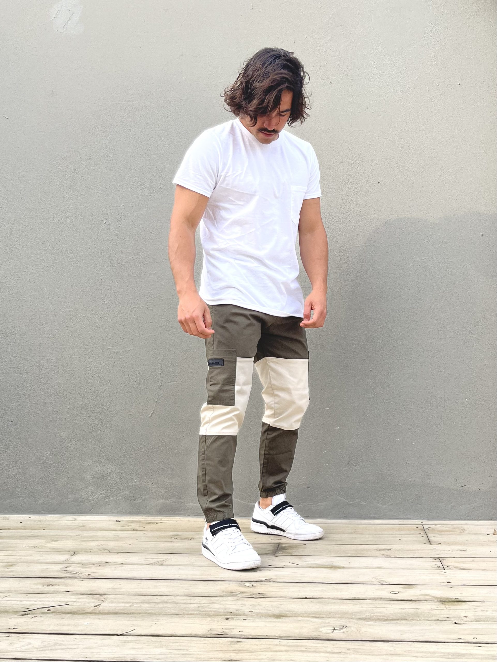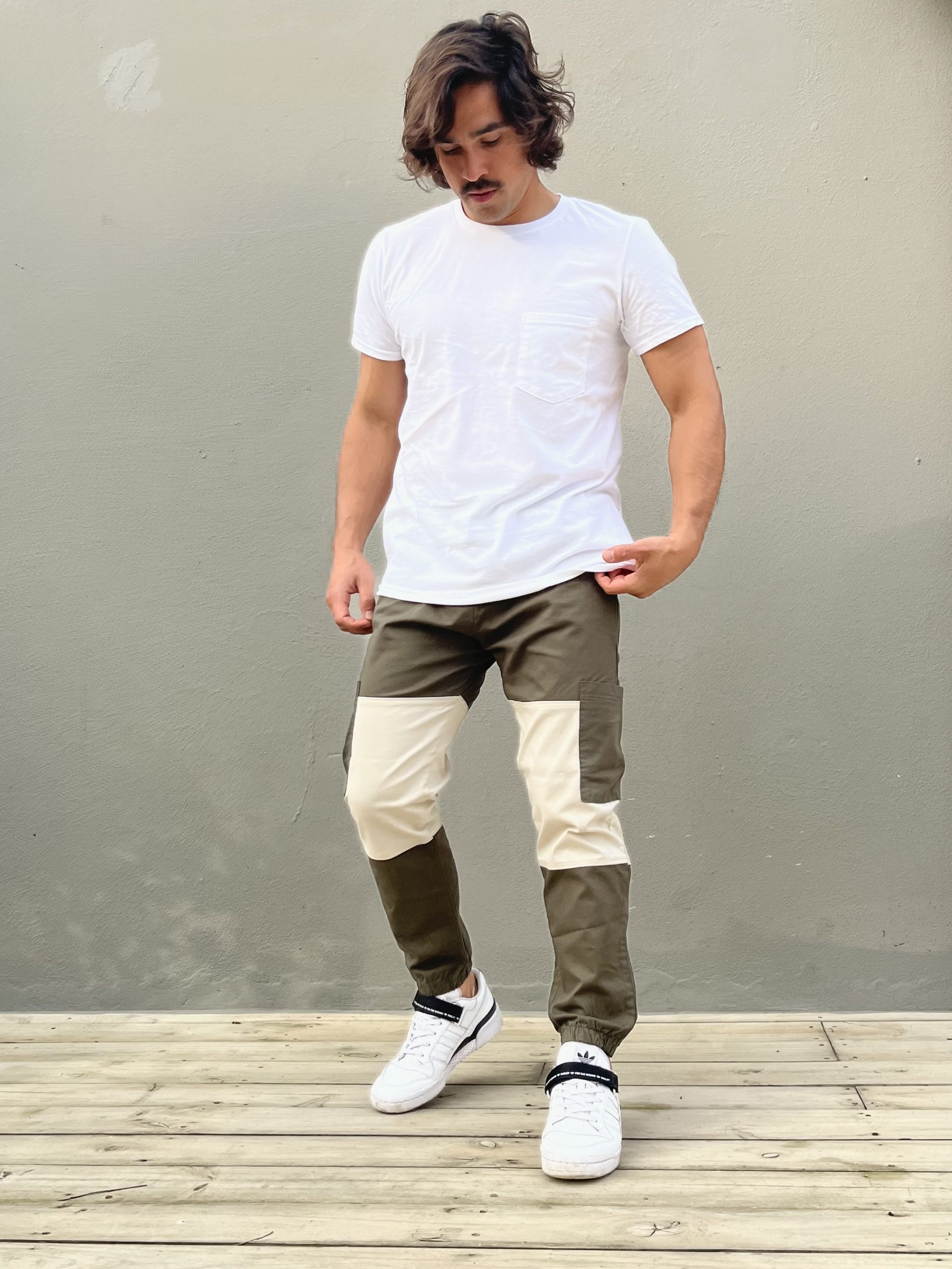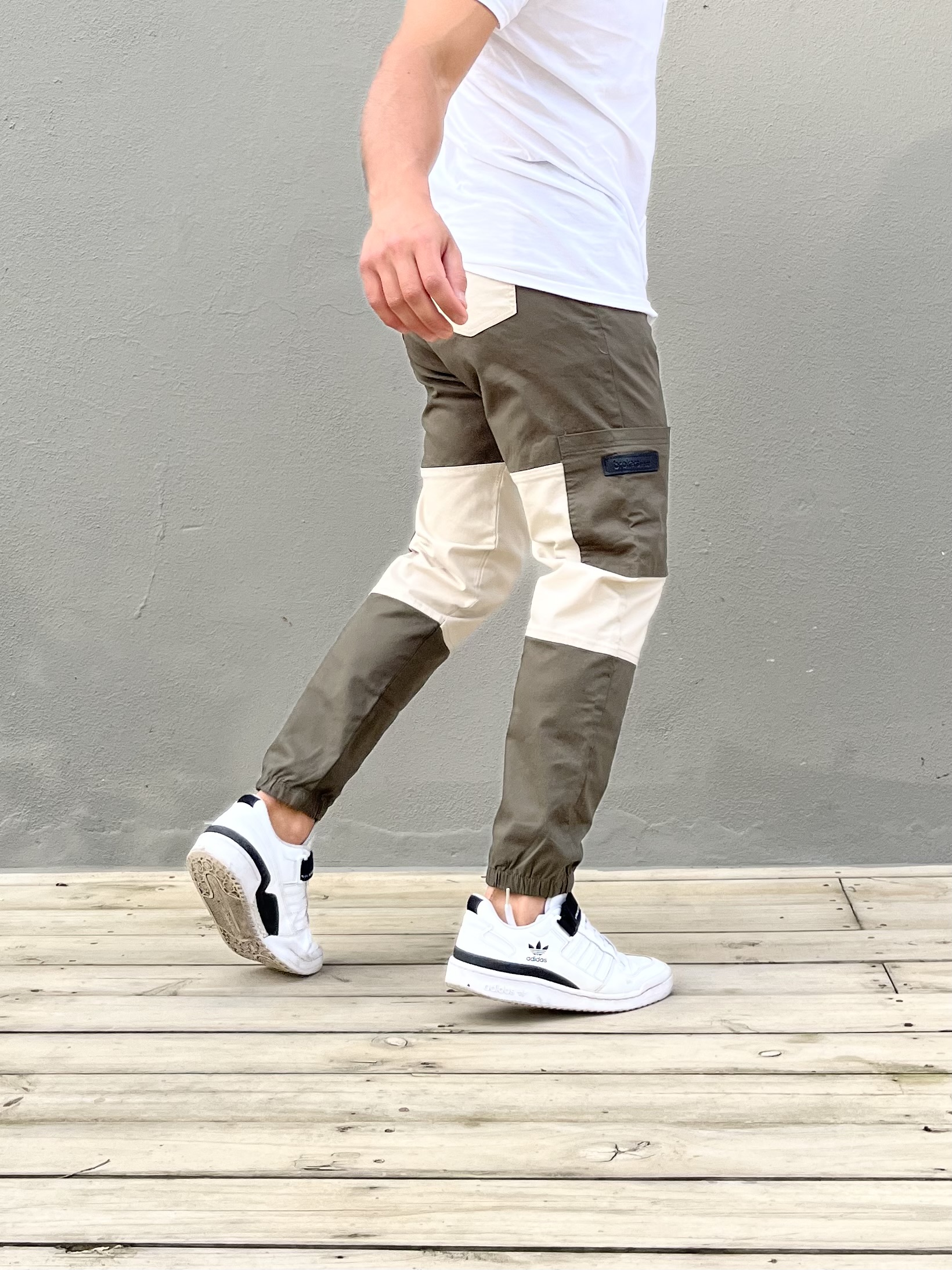 Pantalon cargo de gabardina spandex combinado en dos tonos ! Flow