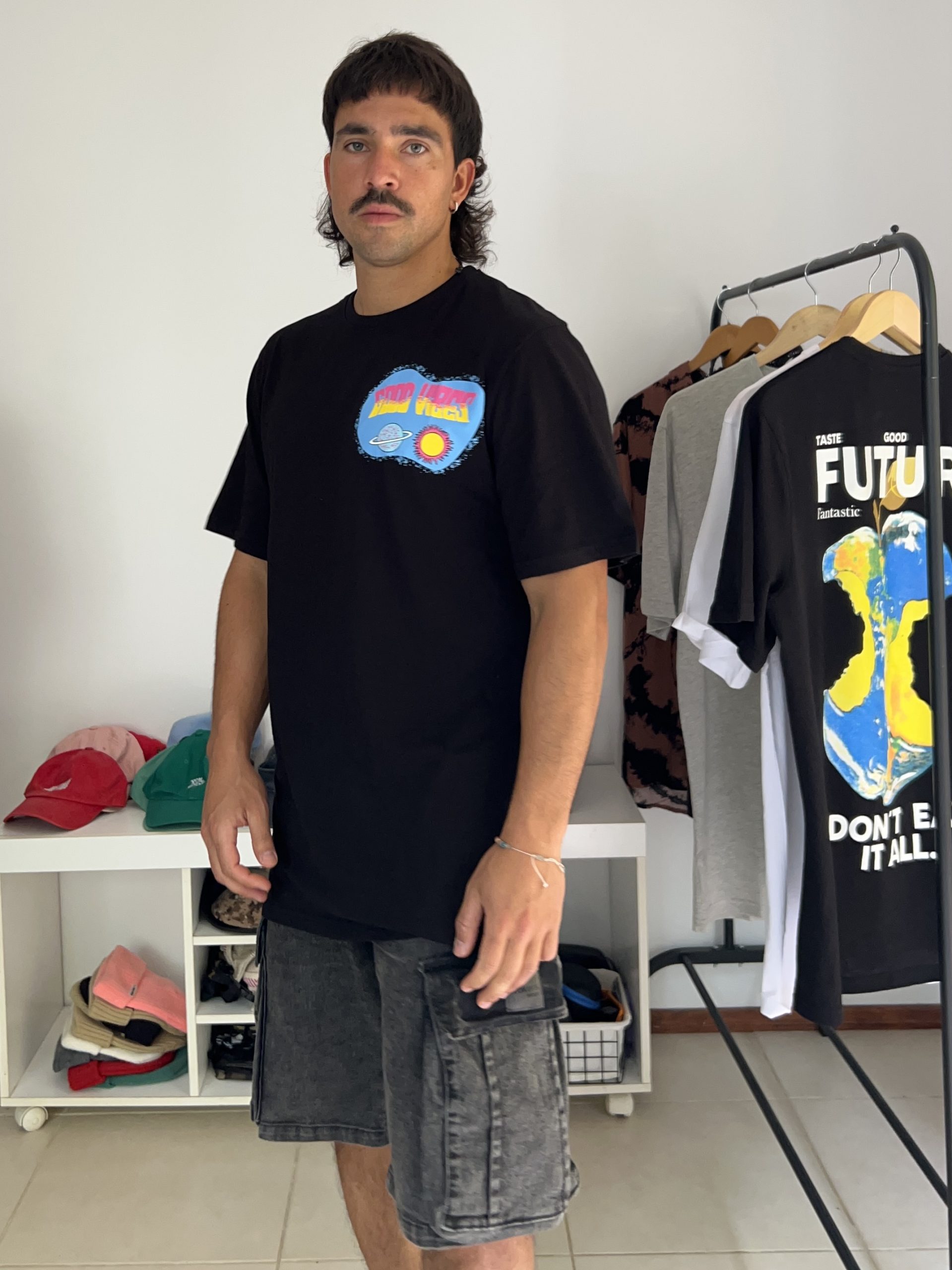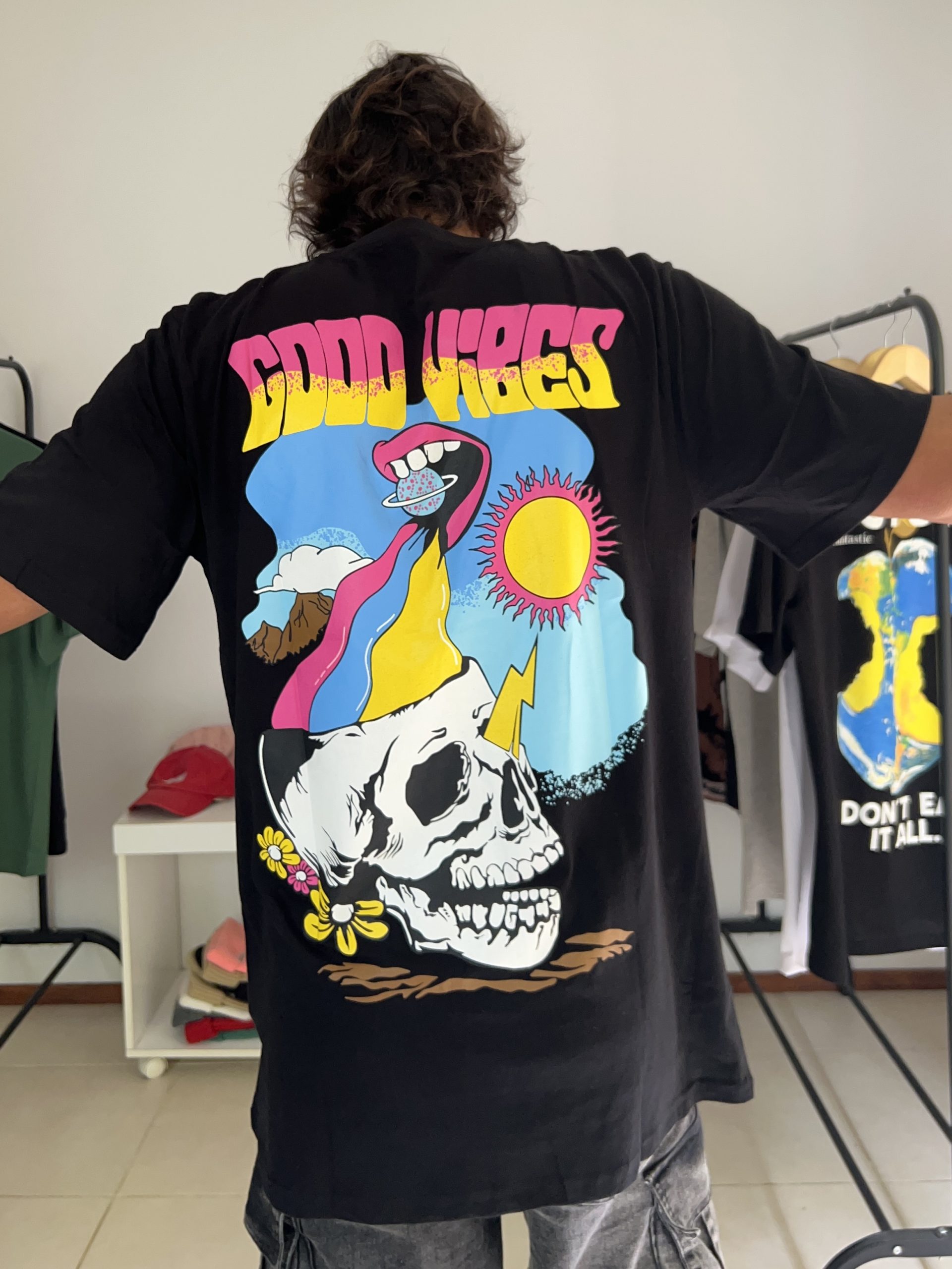 Remera Good vibes, nuevo diseño de esta temporada SS25, se trata del nuevo algodón de verano, mas liviano, mas fresco, si preferís el corte de remera mas oversize te recomiendo un talle mas del que usas habitualmente.